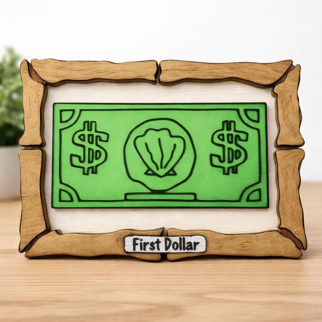 ✨ Details Inspired by the classic “First Dollar” moment Fun cartoon fan décor (not an official product) Great for kids’ bedrooms, playrooms, nurseries, and family spaces Also works well as office, desk, or shelf décor Lightweight and easy to display